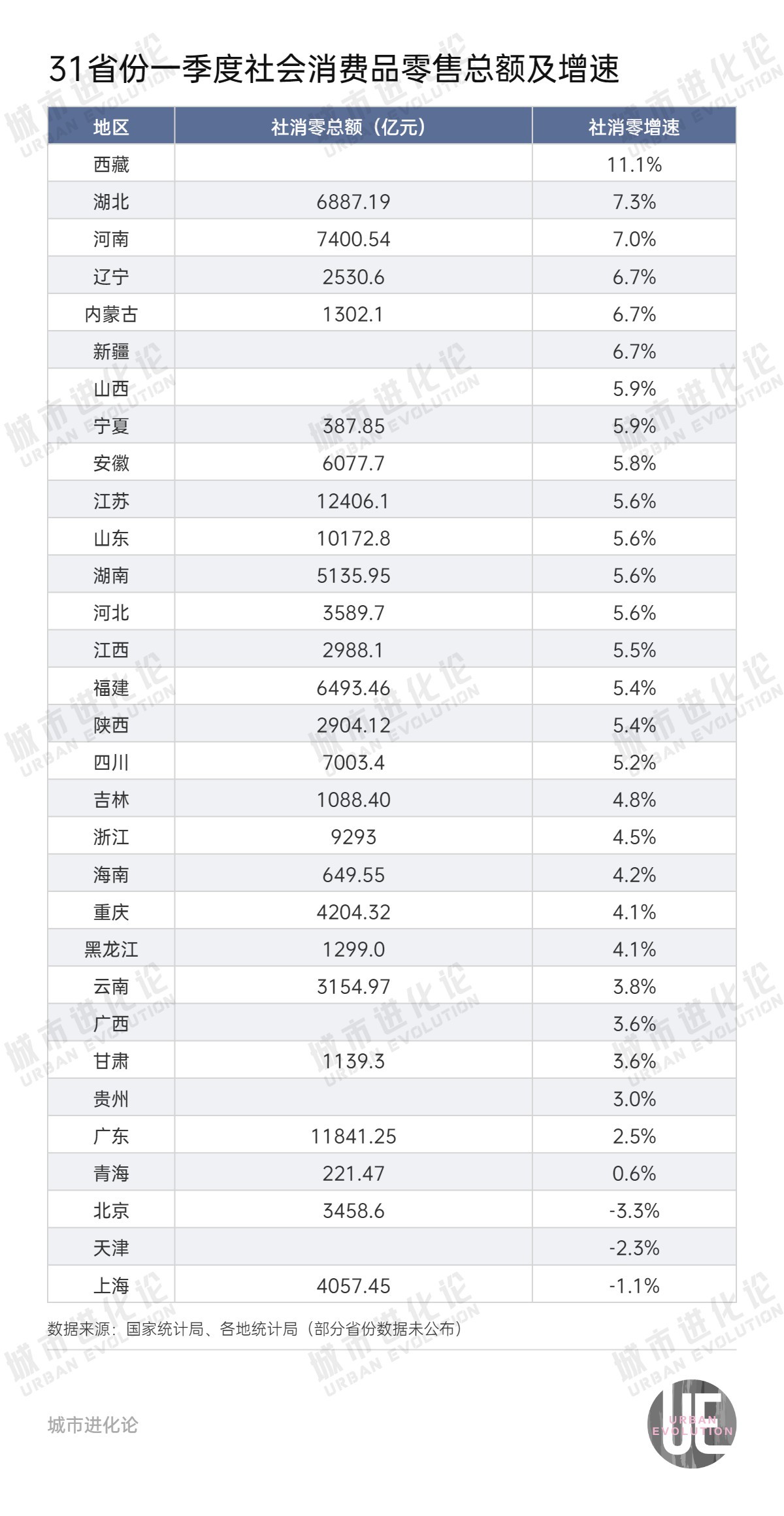 今年一季度,全国社会消费品零售总额达到124671亿元,同比增长4.6%。最终消费支出拉动GDP增长2.8个百分点,贡献了一半以上的经济增长。具体到各省份,今年消费表现如何?