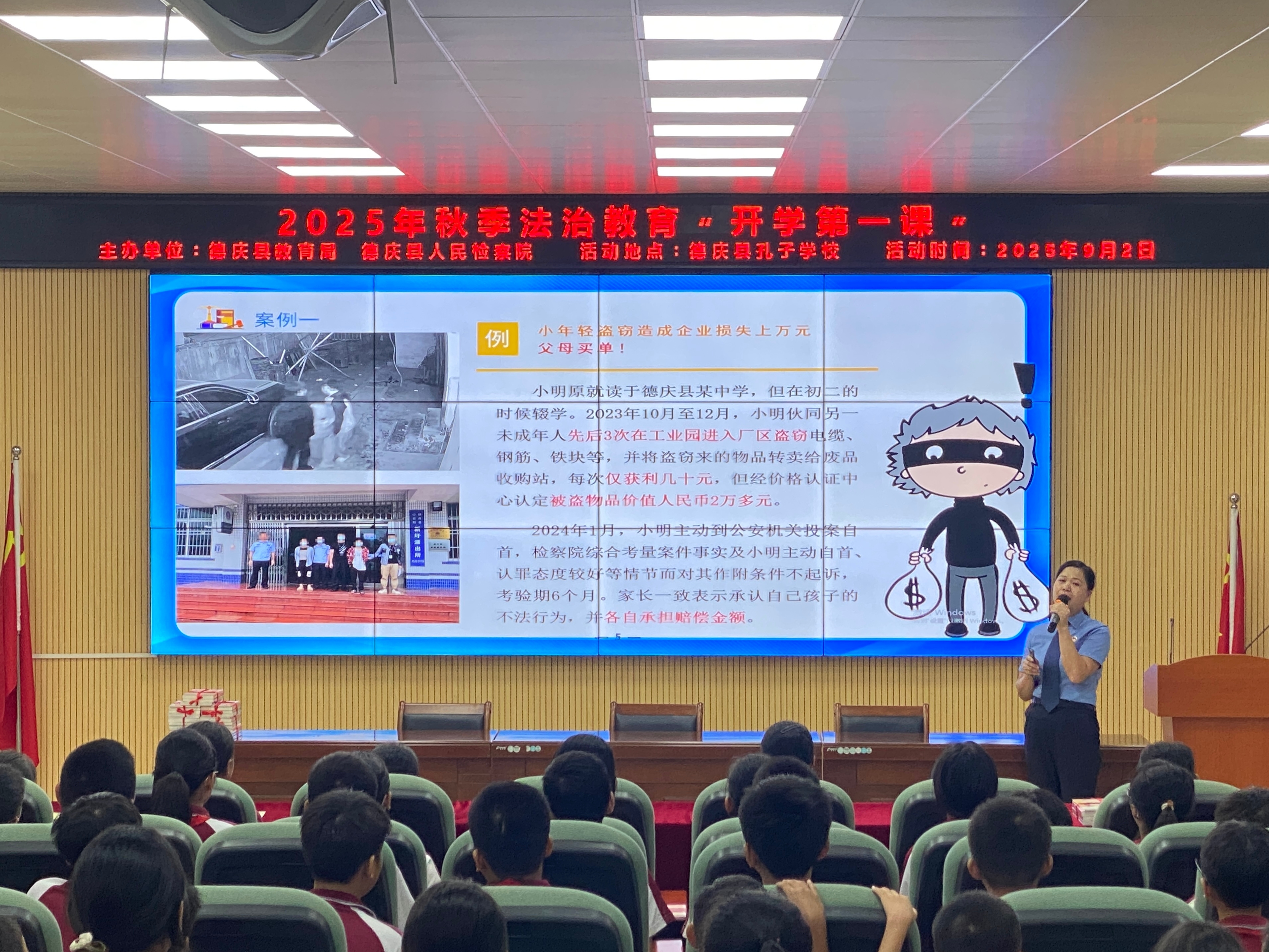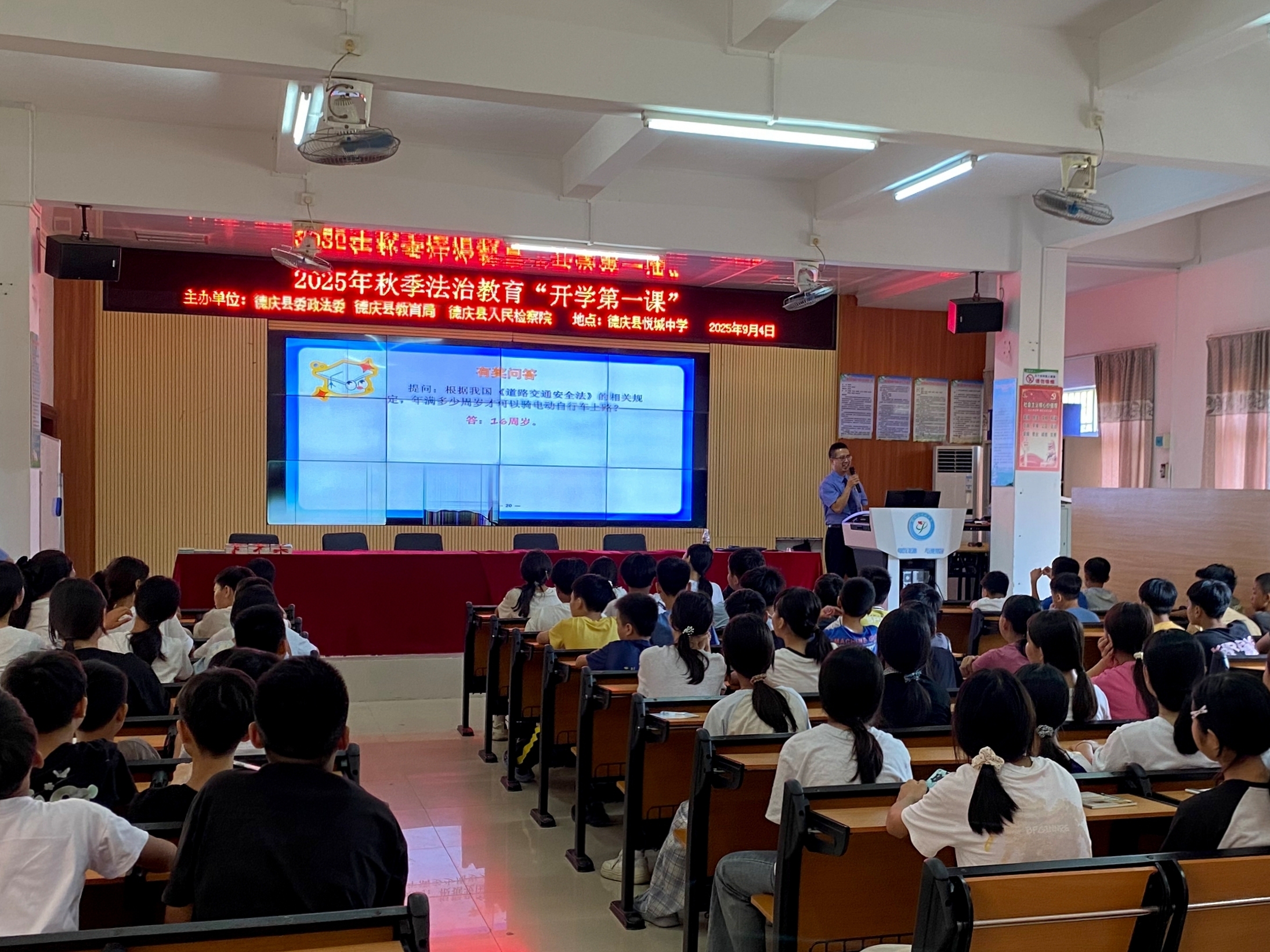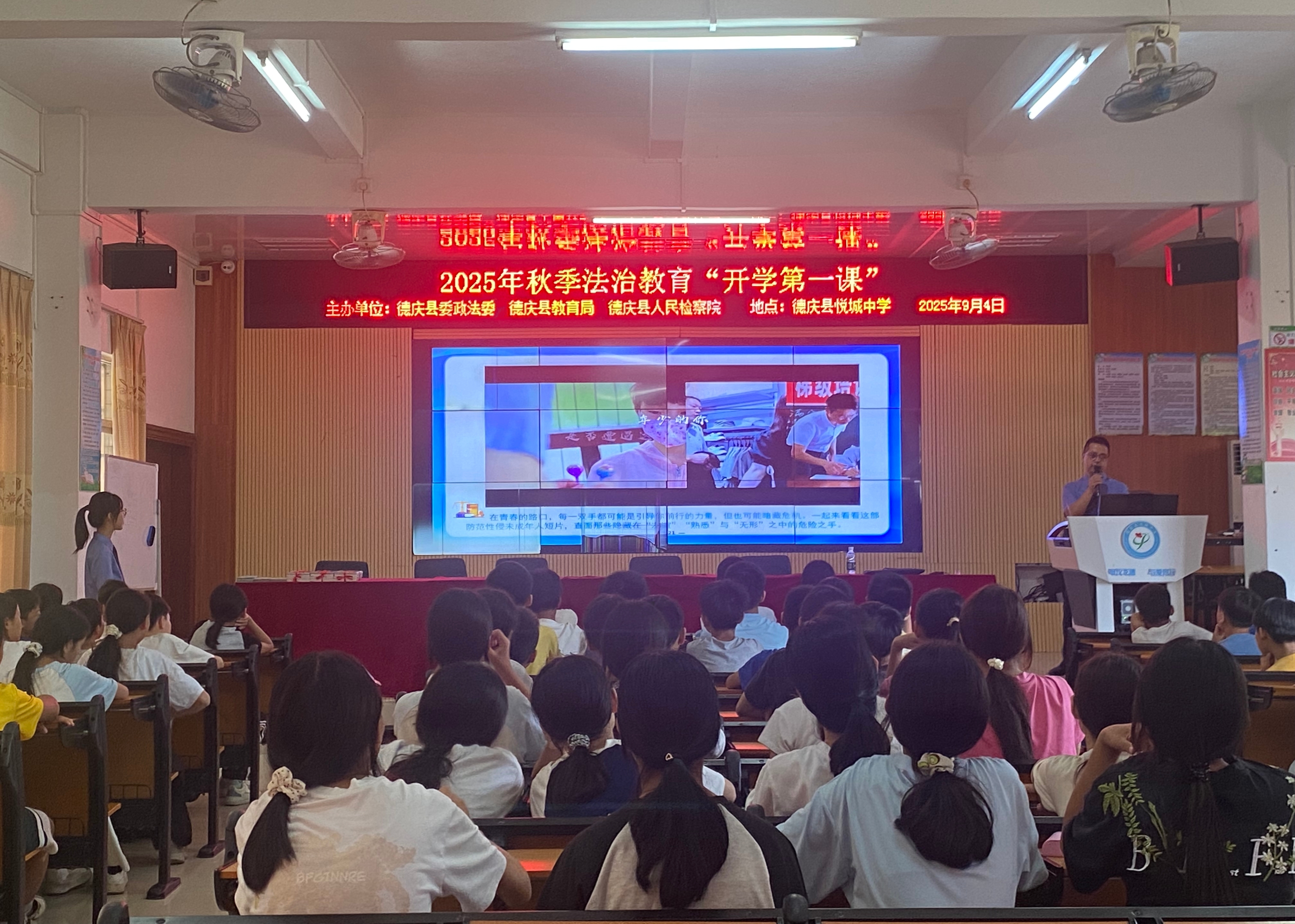 上课铃响,德庆县检察院的“法治副校长”们先后走进孔子学校、悦城中学、德庆中学等多所学校“开讲”,为同学们送上新学期的第一节法治教育课。